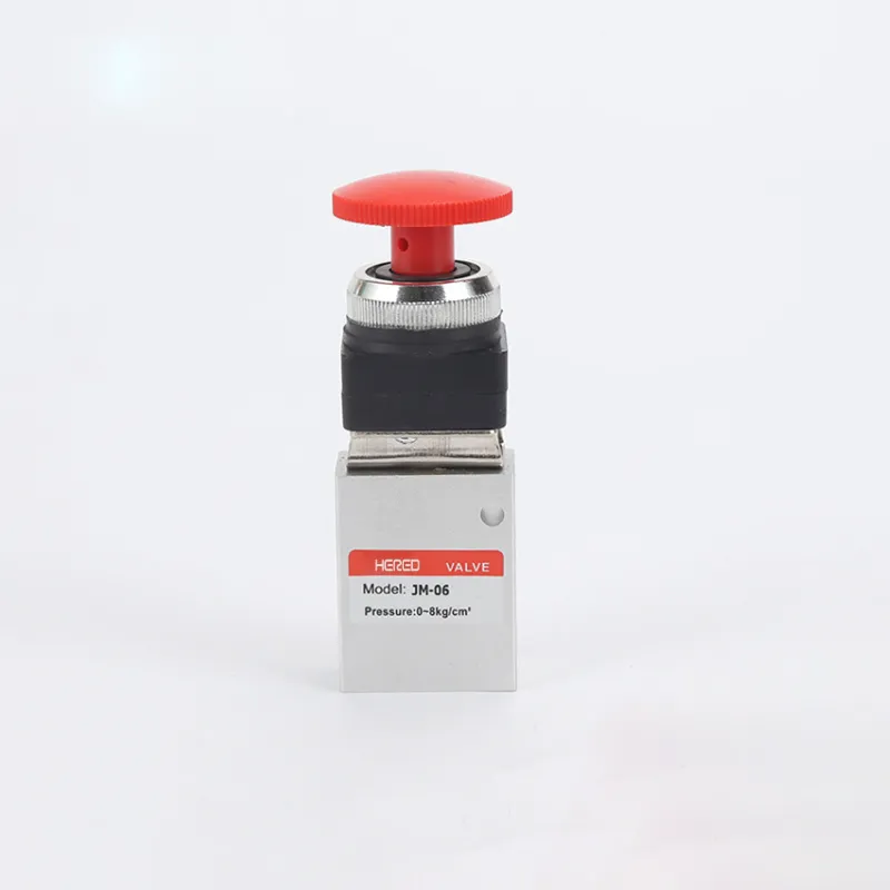 Hered JM Series Mechanical Valves: High-performance pneumatic control valves for efficient airflow management in industrial applications. Available in models JM-05, JM-06, JM-06A, and JM-07. Features 2/3 way valve configuration for versatile control. Standard 1/4″ port size for easy integration. Operates with 40-micron filtered air at 0-8.0kgf/cm² (0-0.8 MPa) pressure range and 0-70°C temperature range, with some models capable of -20°C to 70°C operation. Durable aluminum alloy body with NBR seals ensures long-term reliability. Ideal for pneumatic control systems in manufacturing, automation processes, and industrial machinery requiring precise air flow control. Suitable for two-position three-way or two-position two-way valve applications. Low maintenance design with high-quality materials. Choose Hered JM Series for robust, versatile, and efficient pneumatic control in diverse industrial settings. Easily adaptable to various pneumatic system requirements. Contact Hered Pneumatic for expert guidance in selecting the perfect mechanical valve configuration for your specific needs, ensuring optimal performance and reliability in critical industrial operations requiring precise airflow management.